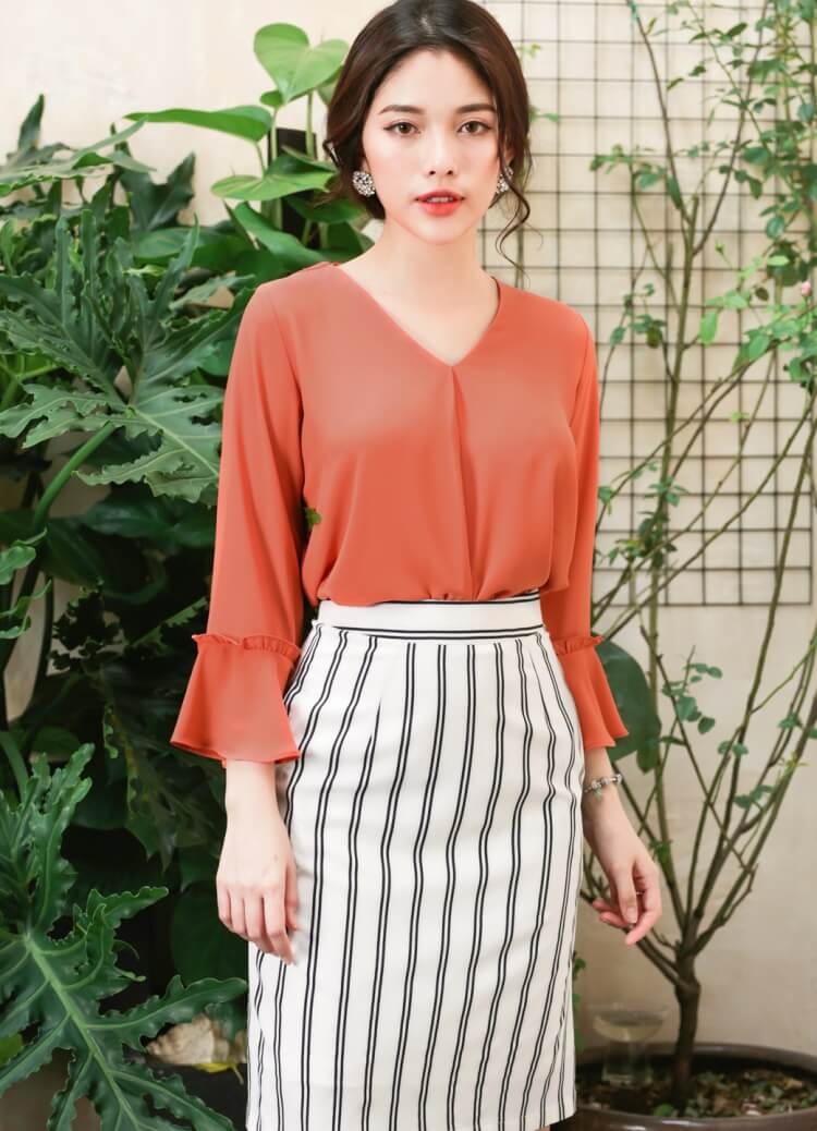 chân váy sọc form dài công sở